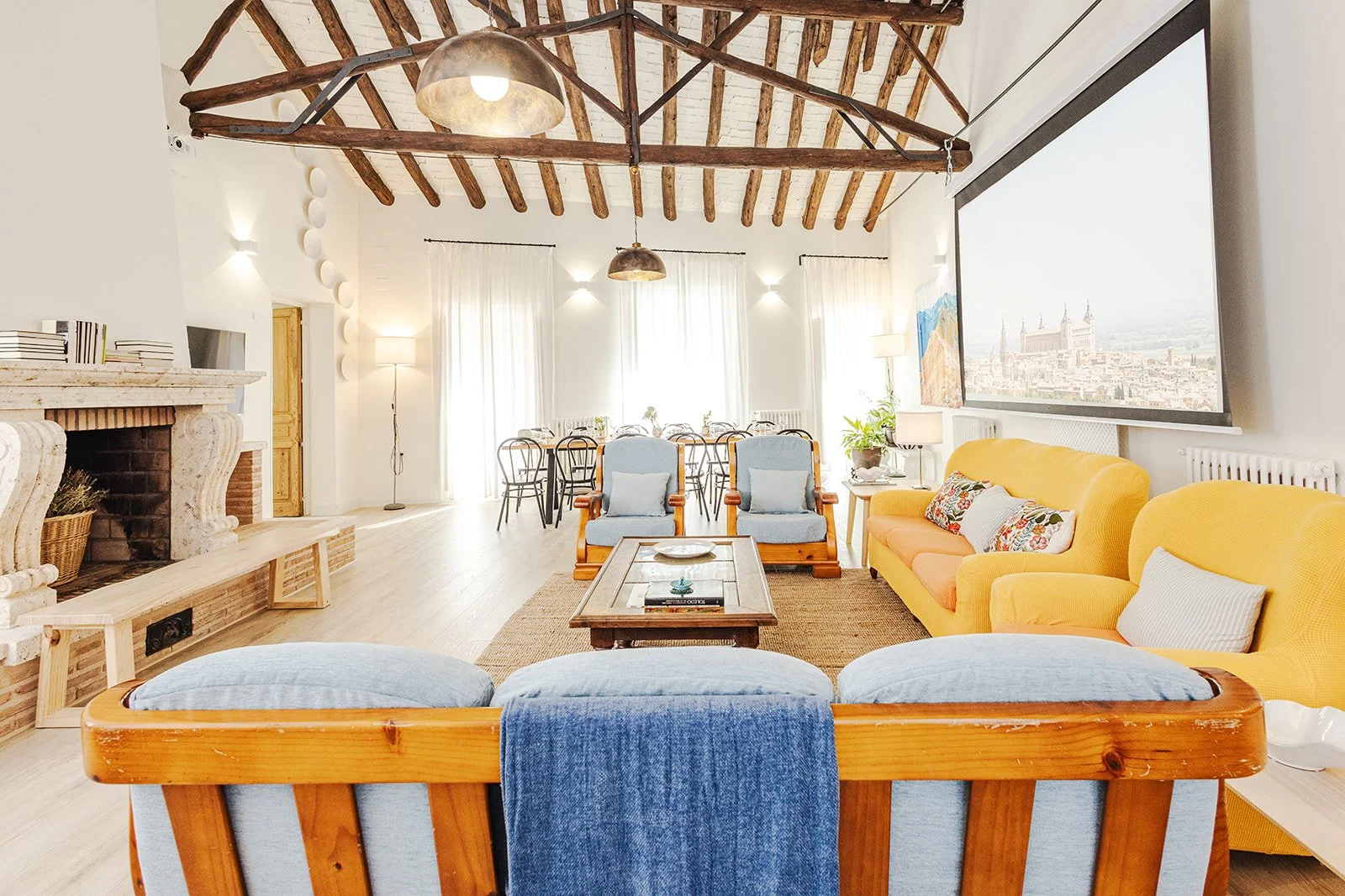 A solo 20 minutos de Toledo y del parque temático Puy du Fou, nuestra casa rural, ubicada en la encantadora plaza del pueblo, es una antigua vivienda completamente reformada que combina historia con comodidad moderna. Con un espacioso salón de 70 metros cuadrados, tres habitaciones muy amplias que dan acceso a terrazas comunes y dos baños bien equipados, ofrece todo lo necesario para una estancia inolvidable.